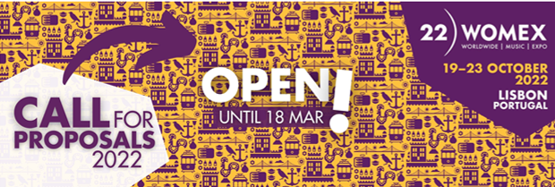 A WOMEX , maior feira profissional de músicas do mundo, está a caminho de Lisboa e ocorrerá entre os dias 19 e 23 de outubro de 2022. Para propor uma vaga no programa, você deve preencher uma inscrição on-line até o próximo dia 18 de março de 2022 às 24h.