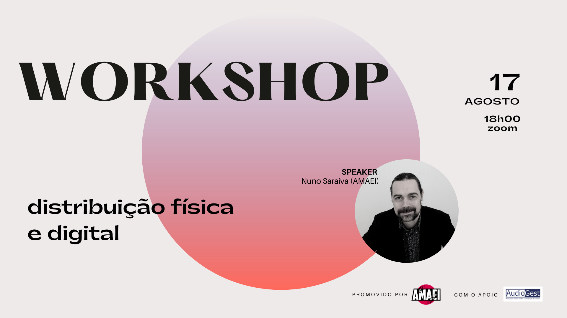 A AMAEI dá continuidade à nova programação de workshops de capacitação profissional com o apoio da Audiogest. Esta série de 12 workshops, sobre diversas temáticas da indústria da música, continua no dia 17 de agosto, pelas 18h00, com o workshop "Distribuição Física e Digital".
